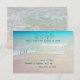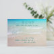 Create your own beach scene wedding or event RSVP cards. Tropical blue water and beach sand is the background image for printed black text. Include the reply by date and attendance information. Include a line for the number of guests attending, or don't. It is easy to customise this simple reply card. Reverse has a beach sand image. See more like this in our "By the Sea" collection of products.