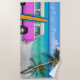 Beach Scene with Fuchsia Pink Van and Surfboard Towel