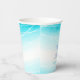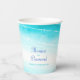 Personalise these beach abstract watercolor art with white graphic waves wedding paper cups with your own couple's names and wedding or event date. Ideal for a beachside outdoor party or to hold confetti in at a beach or coastal themed wedding. © Original watercolor art design by Sarah Trett. www.sarahtrett.com for www.mylittleedenweddings.com