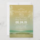 Palm Trees, Beach Waves Sea Engagement Party Invitation. Pretty elegant and simple with a handwritten fonts and old paper background with seascape.
