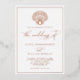 Impress your guests with the timeless elegance of this REAL ROSE GOLD FOIL beach wedding invitation design, with a scallop shell at the top, elegant script calligraphy, and rose gold foil frame.