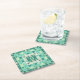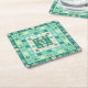 This modern, nautical paper coaster set is done in a quilted block pattern with alternating green and sand-beige squares. This pretty beach-themed decorative, stylised design includes shells, starfish, anchors and sand dollars in light beige and green shades ranging from teal to seafoam. The design has a retro, deco geometric look.
