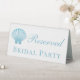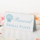 Reserve a special space for your bridal party with this elegant wedding sign featuring a soft blue seashell in turquoise tones. This nautical-inspired design blends coastal style with refined charm, perfect for beach weddings, seaside receptions, or romantic summer celebrations. Whether displayed on the head table or lounge area, it helps create a polished, cohesive look for your wedding day. Fully customisable to suit your vision.
