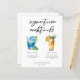 This chic beach signature cocktails menu sheet features simple black typography above 2 seaside drinks and their ingredients for your coastal wedding bar. A cute Blue Lagoon and Pina Colada drawing add a cool flair to your bar menu. Complete with the couple's names and date for their reception.