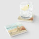 This limestone coaster is shown with a sandy beach starfish print.
