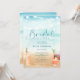 Fun summer string lights script bridal shower party on blue sea ombre gradient sandy beach watercolor. A fun cool party theme, perfect for outdoors party, bbq, garden party, beach and pool party with watercolor cocktails.