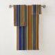 Multi-coloured: Red, orange, blue, green, yellow, beige, and grey stripes