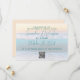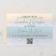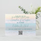 Ocean sunrise save the date announcements with website QR code. Teal blue text with names and date of wedding in large script. Add your wedding website QR code to the bottom and direct guests to see more information online. Check the code to be sure it works.