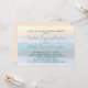 Sunrise wedding invitations. Blue-green fonts with names in handwritten script. A light background of breaking waves and golden sky as the sun rises. Full names of the bride and groom are in casual, handwritten font. This invitation is perfect for a small, intimate ceremony on, or by, the sea.
