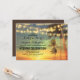beach wedding invitations with hanging string lights on the palm trees. Tropical and modern beach wedding invites with colourful seaside sunset. -- All design elements created by Jinaiji