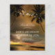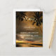Beach or destination wedding save the date postcards with palms, sunset and string lights