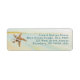 Beach sunset return address labels with two starfish and printed dark teal blue text. Choose any of the three sizes. Sample text can be removed.