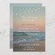 Beach with sunset, string lights, and script. Beautifully save the date that can be customised with your name.Select the "customise" button to change the font style,colour and size.