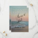 Beach with sunset, string lights, and script. Beautifully save the date that can be customised with your name.Select the "customise" button to change the font style,colour and size.