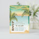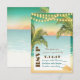 Palm trees and string lights frame the ocean sunset and sandy shore on this lovely beach wedding RSVP card. Customise the modern, stylish text on front with your wedding information.