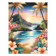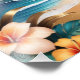 Beach Sunset with Palm Trees and Flowers Photo Print