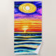 Beach Sunset with Waves & Sun, Orange & Blues Towel