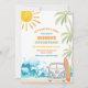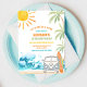 Make waves with this vibrant beach and surfing themed birthday party invitation! Featuring a playful sun, palm trees, ocean waves, a surfboard, and a retro Volkswagen van, this design sets the perfect tone for a fun-filled celebration. Ideal for kids birthdays, this colourful invite captures the carefree spirit of summer and is sure to excite guests. Personalise with party details to create a unique keepsake that matches your childs special day.