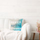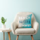 Beach Surfing Summer Typography Sand Ocean Throw Pillow. Beach Surfing Summer typography in white and blue colours on sand and ocean background. Great as a beach house decor. Summer holiday vibe for you. You can change any text on the pillow.
