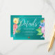 Wedding accommodation and directions calligraphy script details card in aqua blue shades with semi-transparent water like accents, a starfish and colourful Hawaiian style floral bouquets. Perfect for a modern summer aloha beach, seaside, oceanfront, coastal, tropical, nautical or destination themed wedding.