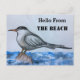 Hello From The Beach! Personalise your beach name on this fun postcard showing a tern seagull loving the beach life.