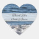 These beach heart wedding thank you stickers feature a shell in the sand in a beautiful heart shape with the words "thank You" and a place for you to personalise with your names. A unique and lovely beach thank you sticker! Copyright Kathy Henis
