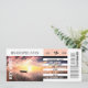 This unique, modern and fun faux aeroplane boarding pass / ticket to Miami Airport or any destination of your choice has been designed to allow you to custom edit the point of departure; arrival; the date; time and place you will be flying to and from for your special wedding, bachelor or bachelorette party. This particular design has a panaromic colour photograph of a beautiful sunset across the ocean on which the silhouette of a boat appears bathed in the soft purple, pink and golden yellow hues of the changing sky. Replace the image with your own and feel free to change the background colour from soft pink to any colour of your choice by using the edit button to explore all custom functions you can use. These are ideal for Florida weekend getaways for men and women or for any anniversary; birthday or bridal do taking place in any island coastal destination.