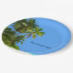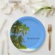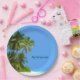 Summer beach party plates with scenic image of a coastal palm trees and beach sand along with tropical ocean in the background with text you can customise and personalise. A natural design with the ocean and tropical foliage designed as a beach theme paper plate you can use to entertain and serve your party guests.