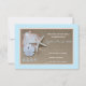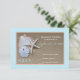 This gorgeous beach RSVP wedding invitation features a photograph of a seashell, sand dollar and starfish on tan burlap. The burlap is surrounded by a white, peach and larger beach blue border. You can customise the date you would like to receive your reply on this RSVP wedding invitation in the matching beach blue. A beautiful beach RSVP wedding invitation. Copyright henishouseofpaper