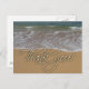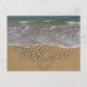 Sandy beach with blue ocean waves, white foam and "Thank You' in white script font. Perfect for wedding, anniversary or birthday thank you notes for destination / beach themed special occasions.