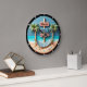 Decorative clock design displaying a serene beach scene with a hammock, palm trees, and ocean view, evoking relaxation and coastal vibes.