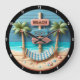 Beach-Themed Wall Clock with Relaxing Hammock and Palm Trees