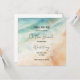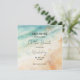 Elegant beach wedding invitation design with image of ocean and sand in the background.
