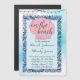 This invitation feels like a soft whisper of the ocean, gently drawing you into a celebration of love. Against a serene backdrop of calming blues and gentle turquoise swirls, reminiscent of the waves that caress the shore, hangs a delicate string of lights—each one symbolising the warm glow of the love that brings two souls together.