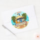 Personalise this Beach Tiki Bar round sticker with your name place and text.