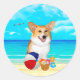 Beach Time Corgi Classic Round Sticker