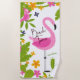 Beach Time Pink Flamingo and Parrot Beach Towel