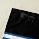 Modern Black, Blue, and White Striped Nautical Boat Name Angel Fish Welcome Aboard Beach Towel