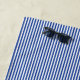 This beach towel is shown in a royal blue and white stripes design.