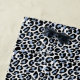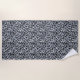This beach towel is shown in a lovely blue and white leopard animal print design.