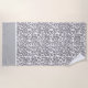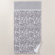 This beach towel is shown in a wild grey leopard print design.