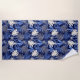 This beach towel is shown in a lovely blue tones tropical palms print.