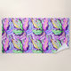 This beach towel is shown in a lovely tropical palms print in vibrant colours.