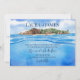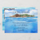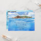 Beach tropical island wedding invitation template, watercolor marine beach scene for romantic beach wedding.
