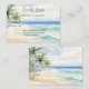 A watercolored sandy beach, ocean waves and palm trees as background. Personalise and add the reply by date.