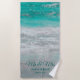 Coastal turquoise white beach themed watercolor wedding beach towels. Nautical summer ocean waves tropical reception favour gifts. Beautiful, chic, trendy, modern, cool, elegant. Look for matching products in my store collection. Image copyright Marg Seregelyi Photography.