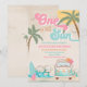 Celebrate your little ones special day with this vibrant beach party invitation featuring palm trees, ocean waves, a retro surf van, and playful summer vibes. Perfect for a first birthday or any tropical celebration, this design captures the fun of sunshine, surfboards, and seaside adventure. Customise with your party details to create a unique keepsake that sets the tone for a cheerful and unforgettable event.
