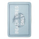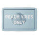 beach cottage theme design with customisable "beach vibes only" text in distressed white font, blue background and vintage blue tinted seashell illustration