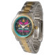 Very good quality watch that looks good whether dressing up or down. The band is sturdy. The watch is rather large so might not work for smaller folks. Recommended as a good gift. Printing is just a touch light but adds a nice touch of personalization.