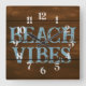 Beach Vibes Wording on Dark Wood Boards Square Wall Clock